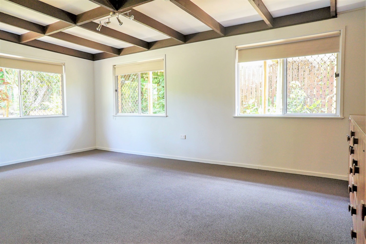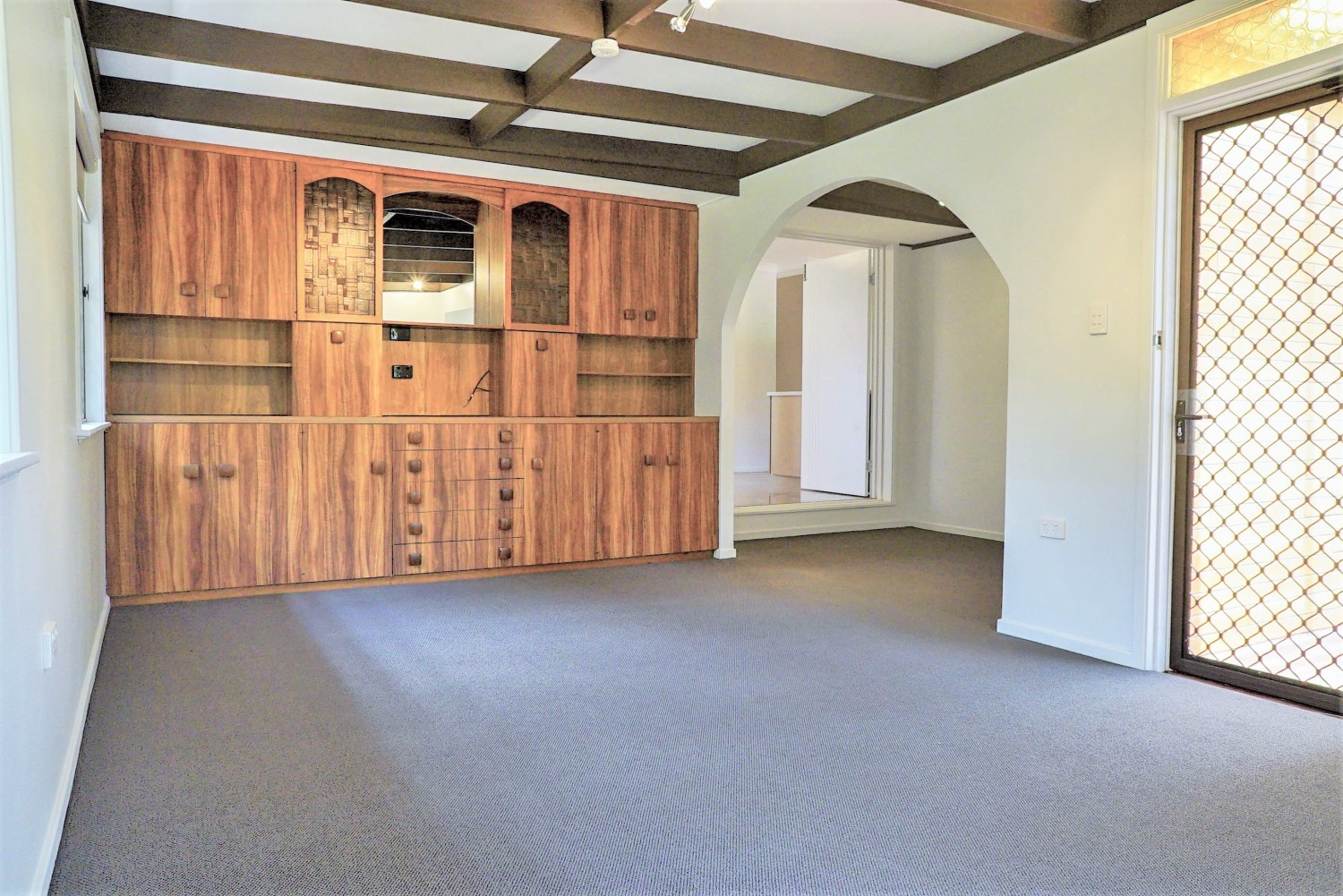 Second carpeted living/rumpus room with built-in tv/display cabinet