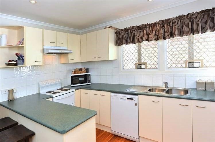 - Three large bedrooms with built-in wardrobes and ceiling fans
