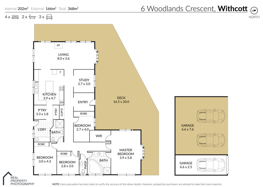 • 4 spacious bedrooms - bed 2 and 4 with built in robes. Master comes complete with walk in robe and huge ensuite - boasting separate shower and bath. The master also features a wonderful bay window and access onto the timber deck.