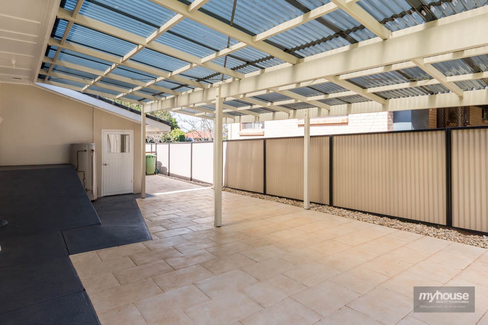 The three bedrooms are all well-proportioned in size with two of them offering built-in wardrobes. The stylishly renovated bathroom which is situated adjacent to the bedrooms features shower, bathtub and separate toilet. Next to the bathroom is the big internal laundry with storage and bench space and is your access outside into the massive North facing covered and paved outdoor area.