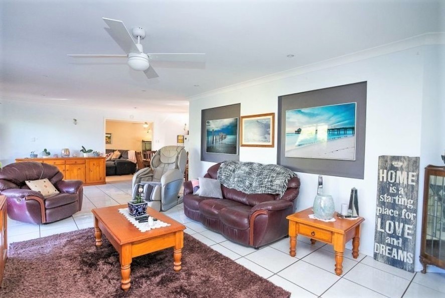 - Four bedrooms with built-in wardrobes and ceiling fans (master with air-con and large walk-in robe)