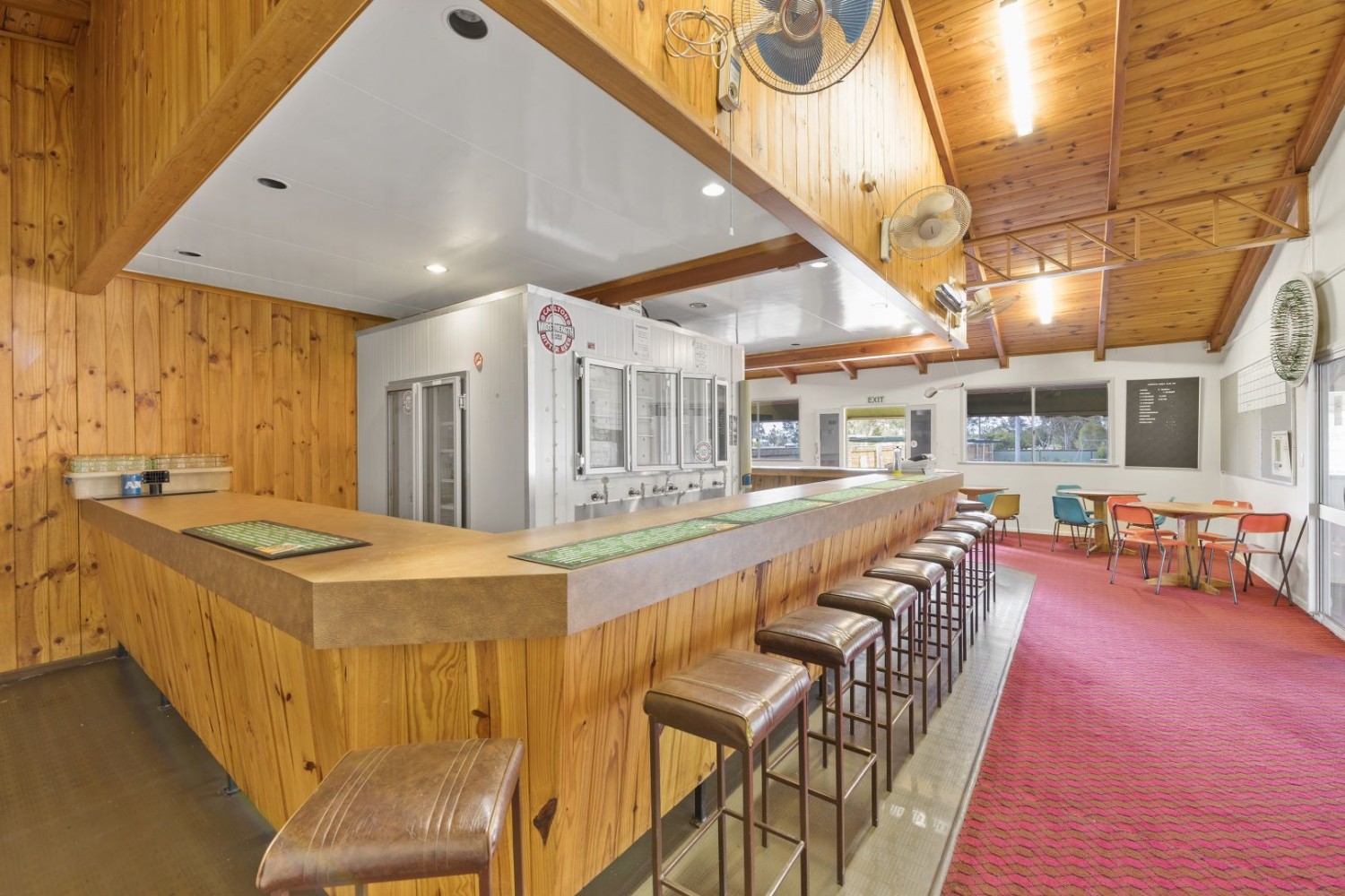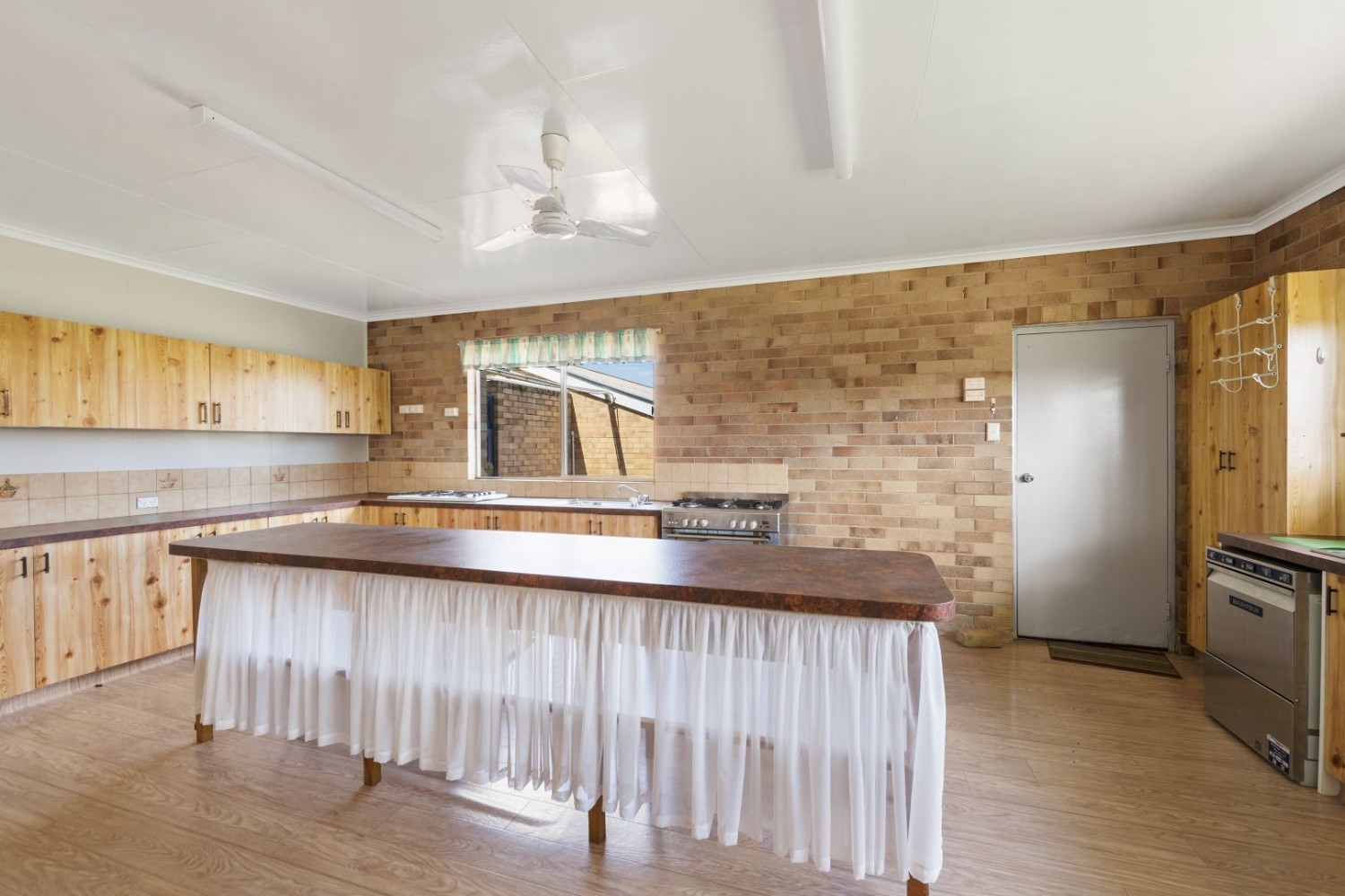 Absolutely massive under roof with an enormous open hall with high raked exposed timber ceilings, functional bar room with built-in cold room and sitting areas, large eat-in kitchen with plenty of bench space and an upright electric oven with gas cook top, multiple toilets, shower, multiple storerooms and a full length covered verandah which once redeveloped will lookout over Parkland, if this is not enough space for you there is also a detached 11.5 x 5.8mt powered brick shed.