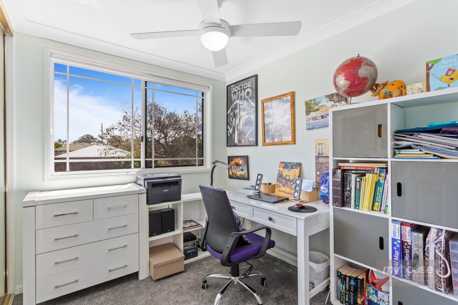 - All three carpeted bedrooms are located upstairs with ceiling fans and built-in wardrobes
