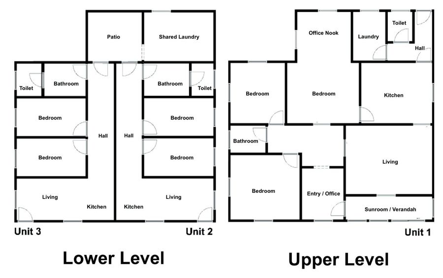 With the upstairs unit which features beautiful ornate cornice and ceiling roses comprising of 3 large bedrooms, 1 bathroom, huge lounge, eat-in kitchen, sunroom, laundry and 2 x study rooms/areas and downstairs 2 x mirror image 2 bedroom, 1 bathroom, open plan kitchen/living/dining units and a shared laundry, combined all 3 units are currently returning $760per/week.