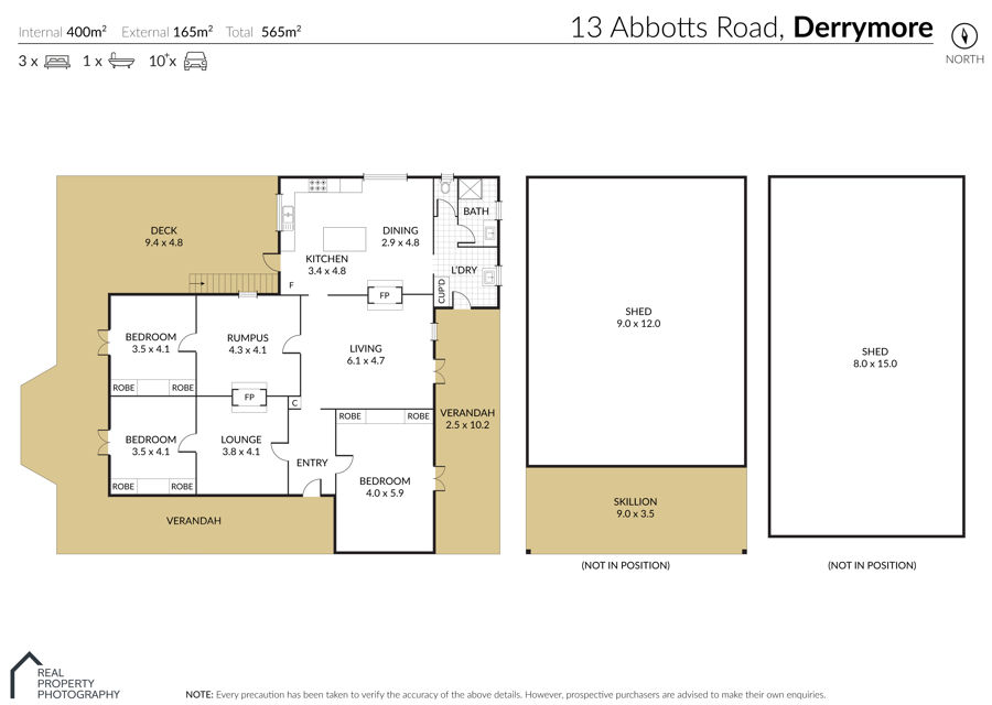 • 5 spacious bedrooms - 3 of which have built in robes and direct access to the wrap around timber veranda. Bed 1 offers reverse cycle a/c and 2 of the bedrooms boast open fireplaces and could also be used as sitting/lounge/office/rumpus rooms (both rooms shown as lounge and rumpus on the floor plan).
