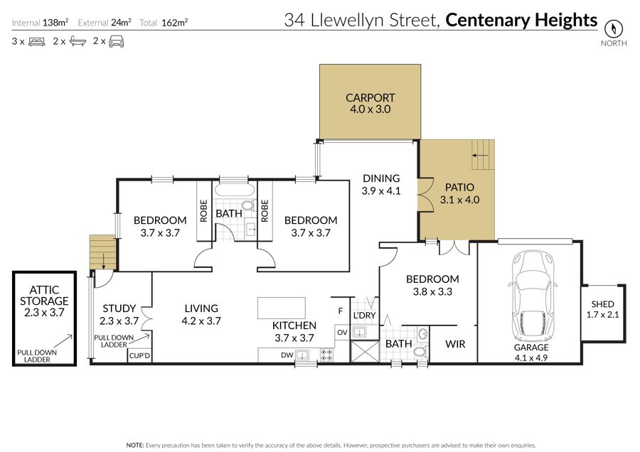 • Study at the entrance featuring a cleverly designed attic storage room with drop down ladder - perfect for storing those extra boxes!