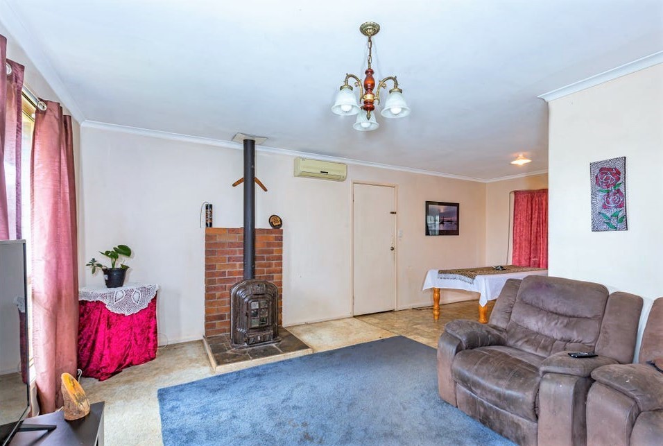 - Carpeted lounge room upon entering with air-conditioning and wood heater
