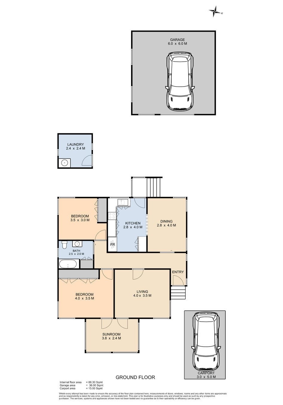 - Drive through single carport to he 6 x 6mt powered garage/workshop, external laundry