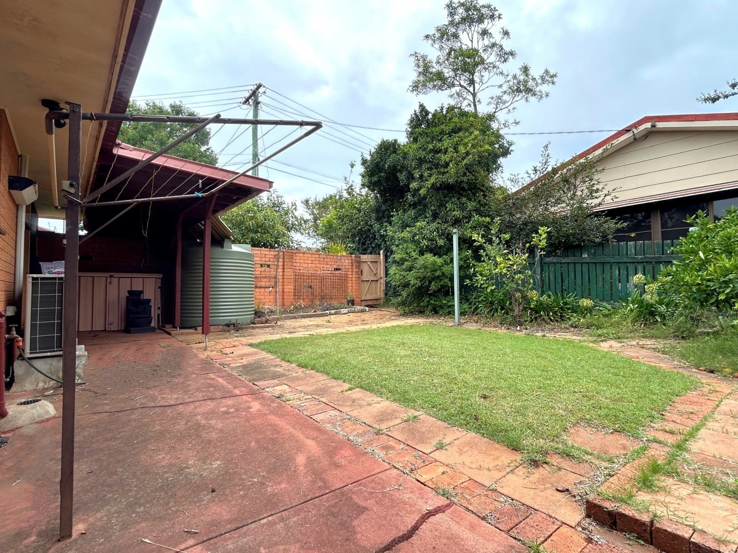 - Fully fenced courtyard with established gardens and small outdoor area