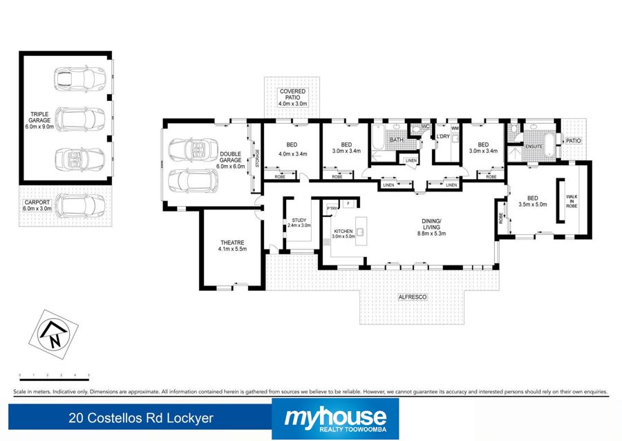 - Carpeted formal lounge/media room, spacious open planned living/dining room off kitchen