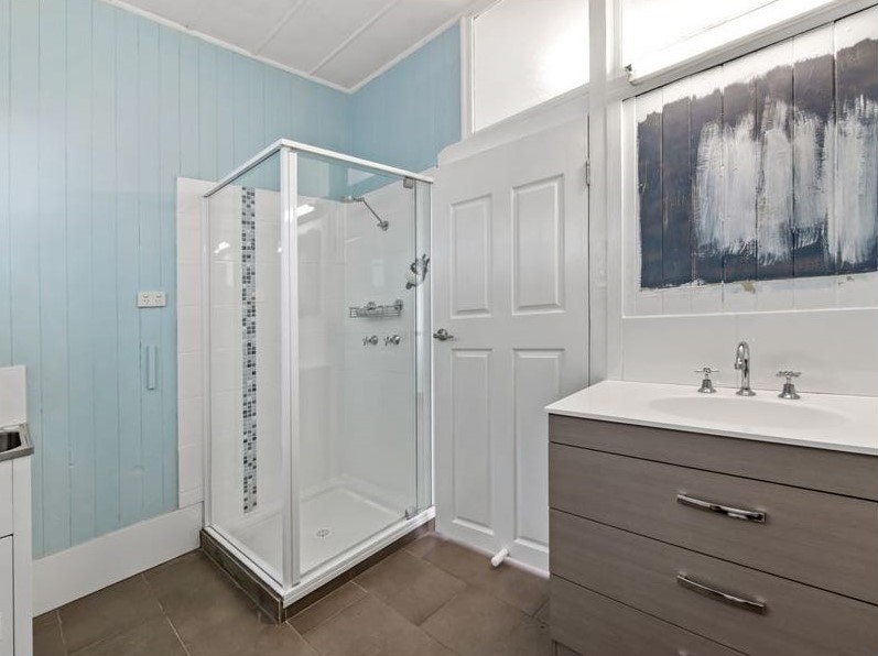 - Renovated bathroom with shower, vanity, toilet & laundry