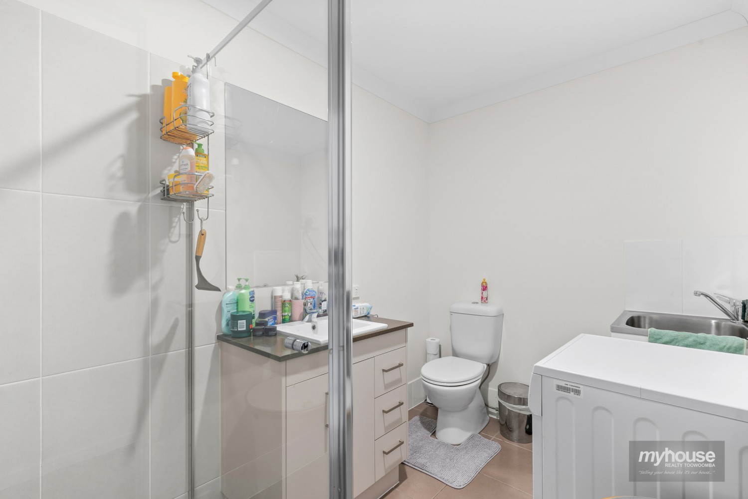 - Bathroom with shower, toilet and incorporated laundry