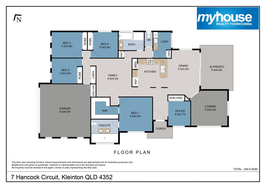 Boasting an inviting formal entrance, immediately off the entrance is the large home office with built-in wardrobe, which has the option to utilise as a small fifth bedroom if needed. Heading further into the home you enter the central kitchen and dining room that flows seamlessly out onto the generous North facing outdoor entertaining area and low-maintenance lawns and gardens.