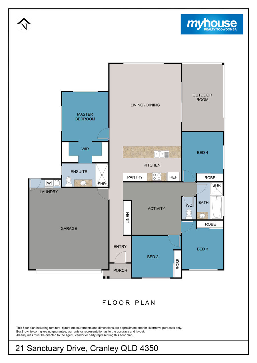 Completed in 2016 and well-maintained throughout, inside this property offers a spacious air-conditioned open plan living and dining room that opens directly onto the covered/underroof North facing outdoor entertaining area, quality kitchen with electric appliances including dishwasher and stone benchtops with breakfast bar, carpeted kids activity/lounge room off three of the built-in bedrooms with ceiling fans, separate main bedroom with walk-through wardrobe and ceiling fan, two well-appointed bathrooms including ensuite to main with stone benchtops to vanities, and a double lockup remote garage with laundry at rear.