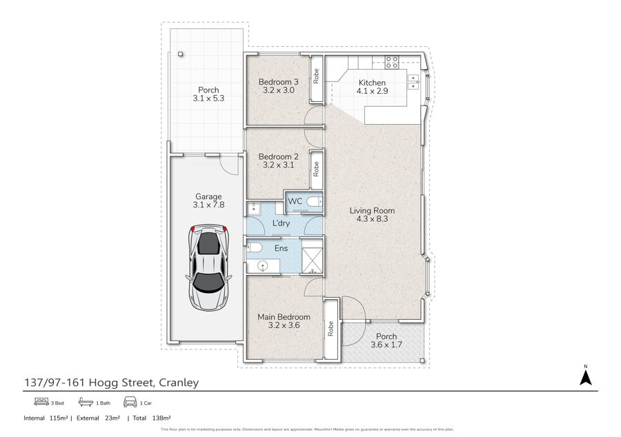 - Single lockup garage on remote with internal access. The garage can also be used as a 2nd living area if you so wish.