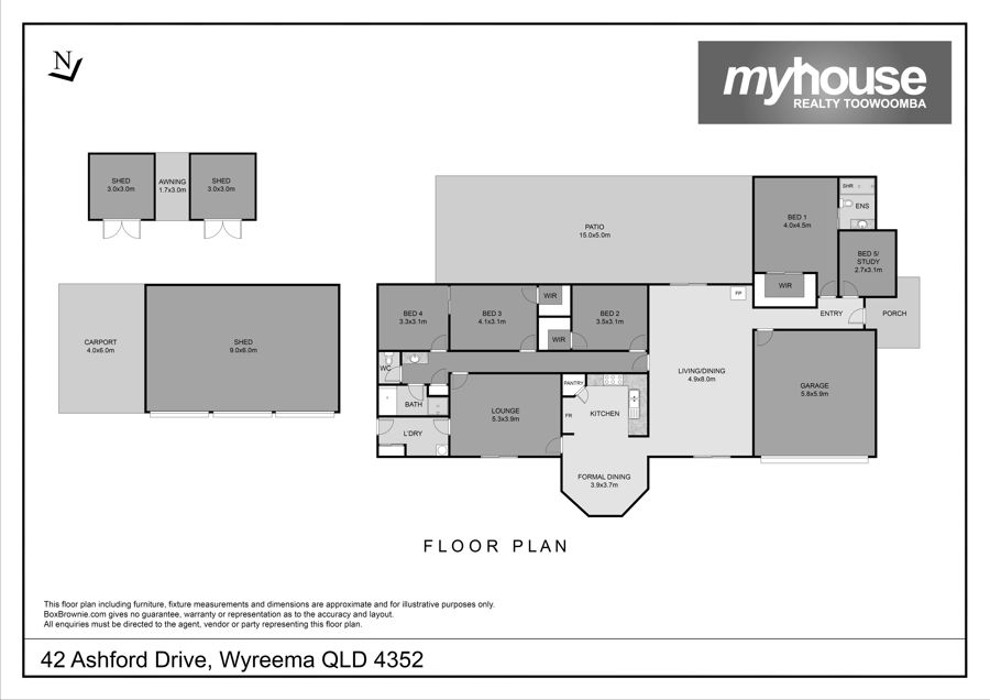 - Five carpeted bedrooms (four with built-in wardrobes, main with walk-in robe)