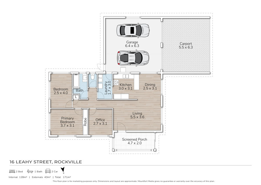 Offering a front entrance/sunroom, open plan and air-conditioning living and dining areas, modern kitchen with upright electric oven and dishwasher, three bedrooms (main with wall-to-wall built-in wardrobe), updated bathroom with shower over full-sized bathtub and separate toilet, and an open/concreted alfresco area, by far one of this property's biggest selling points is the secure car accommodation for up to four cars, with a double garage and attached/secure double carport.