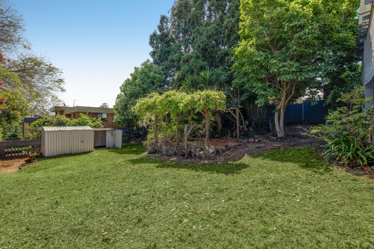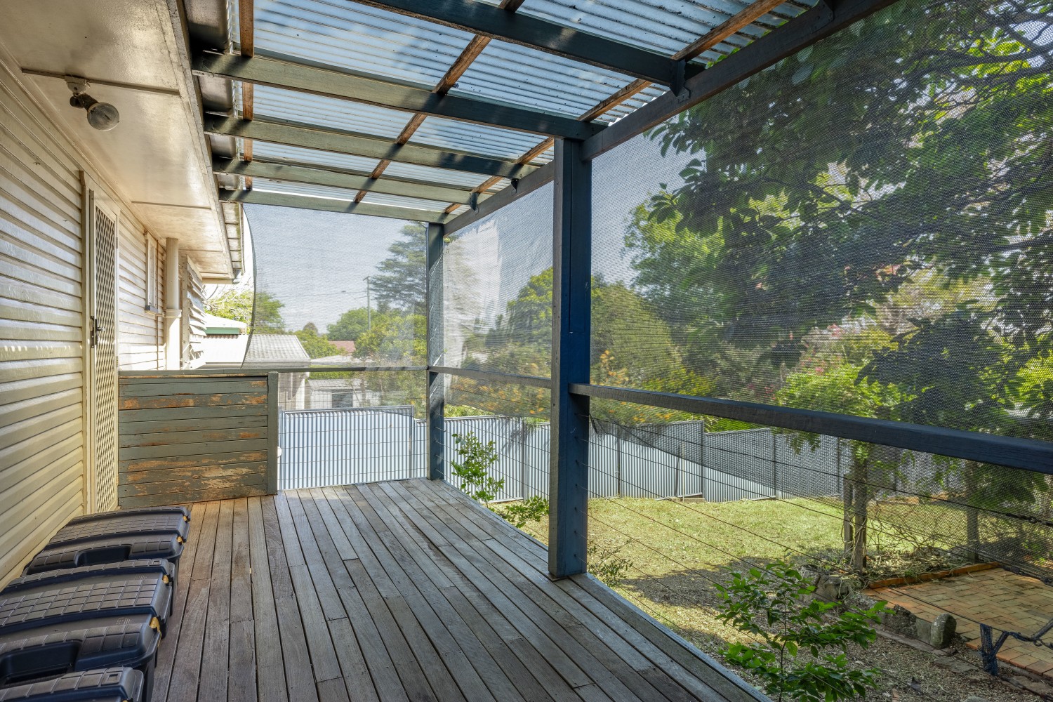 - Rainwater tank, garden shed and deck