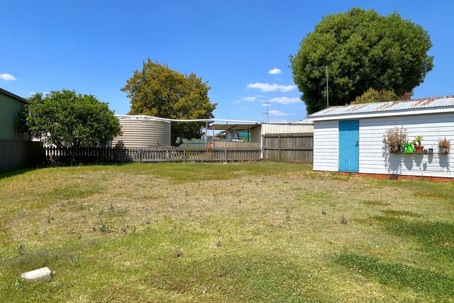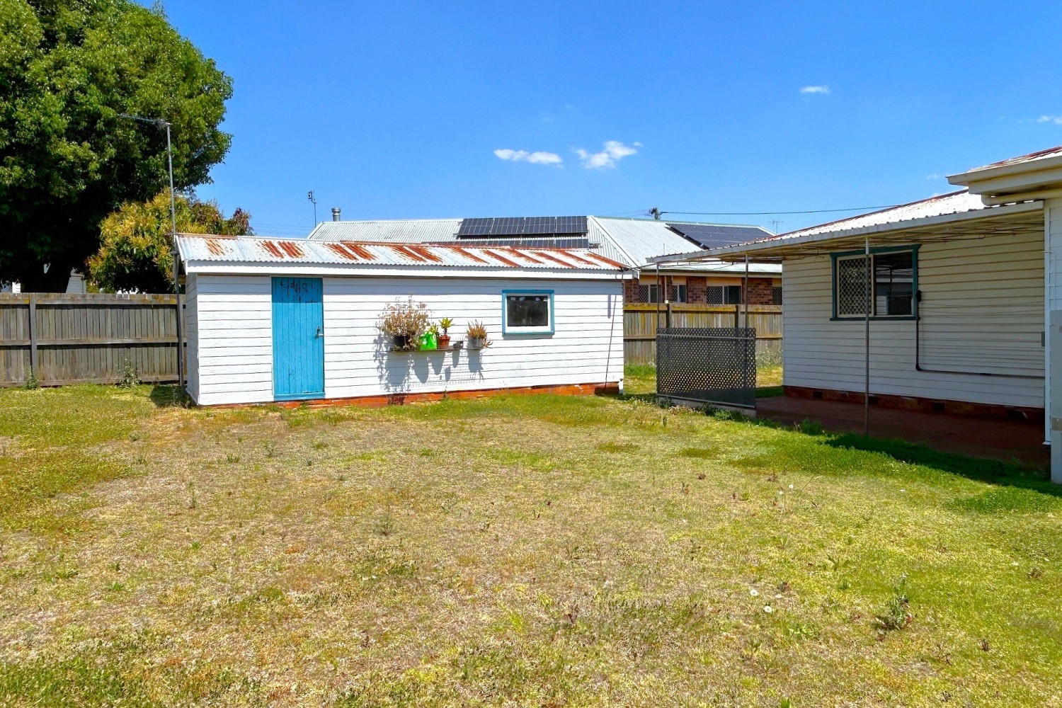- Partially fenced 718m2 allotment with open timber single car garage