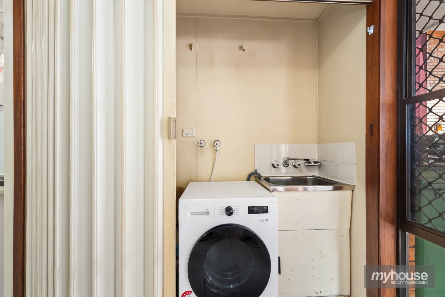 - Internal laundry cleverly incorporated into cupboard adjacent to the kitchen