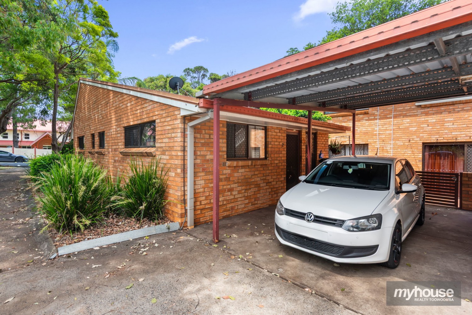 - Single carport located immediately behind the rear entrance door of the unit