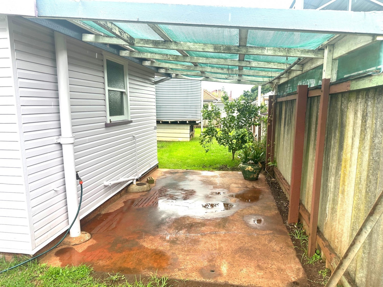 - Single lock-up garage with attached carport