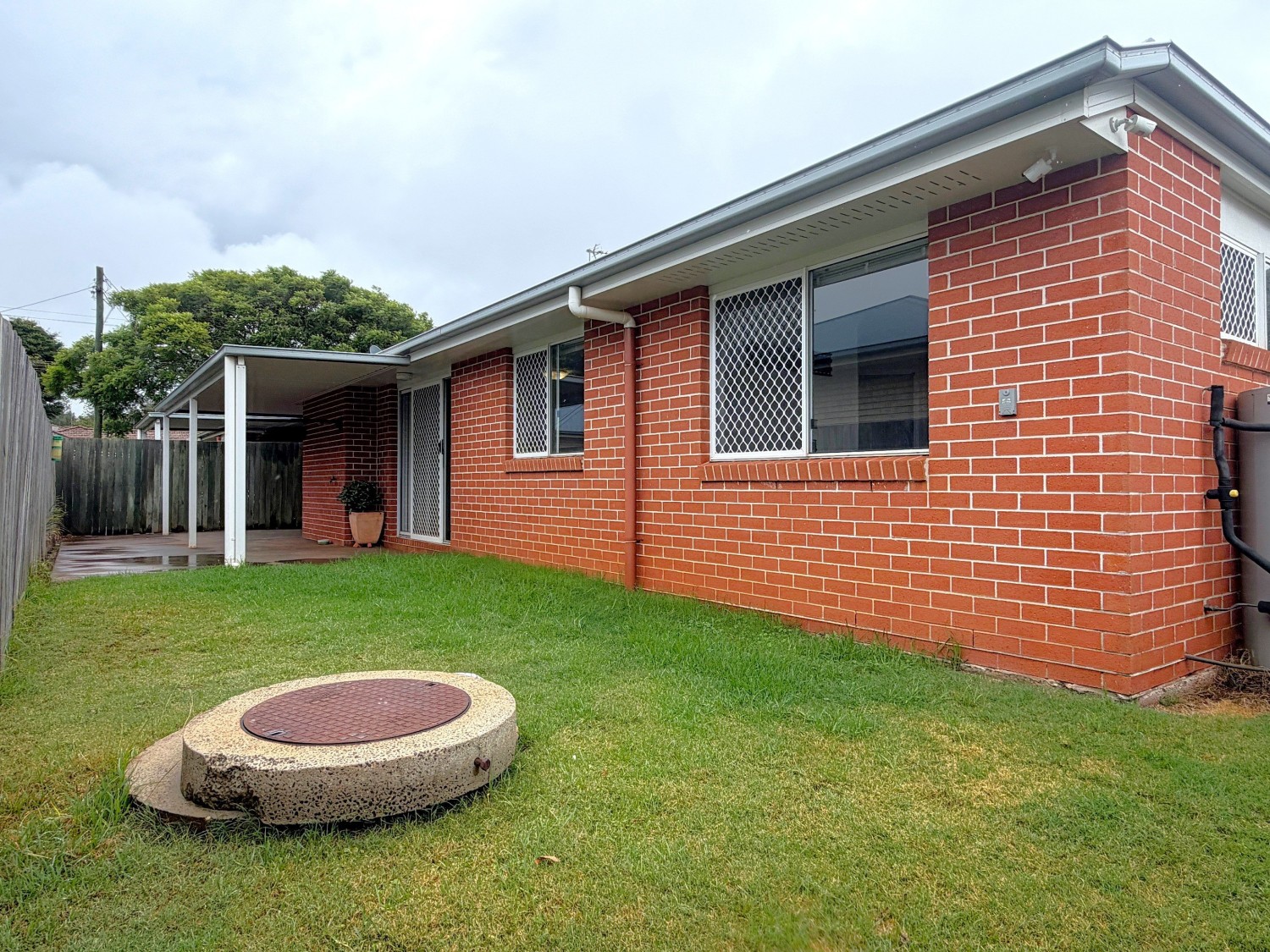 - Private L-shaped courtyard with covered outdoor area