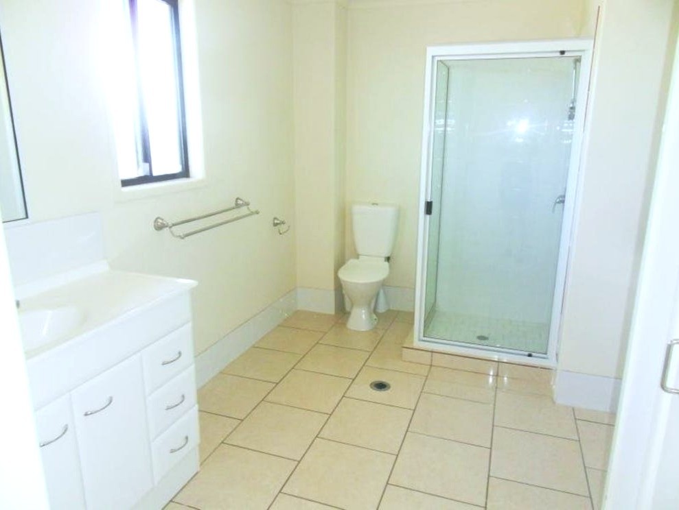 - Large combined bathroom/ and laundry with shower, vanity, toilet